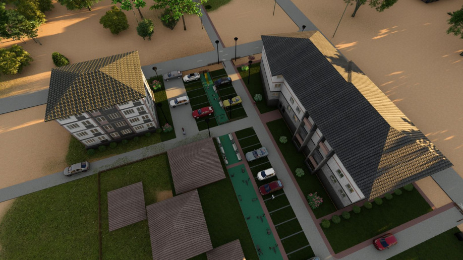 Территория комплекса продумана до мелочей: здесь будут оборудованы детская и спортивная площадки, чтобы у каждого члена семьи было своё место для отдыха и активности. Важной особенностью проекта станет автономная система водоснабжения и генераторы освещения на случай перебоев — решение, которое делает жизнь в доме стабильной и комфортной при любых обстоятельствах.